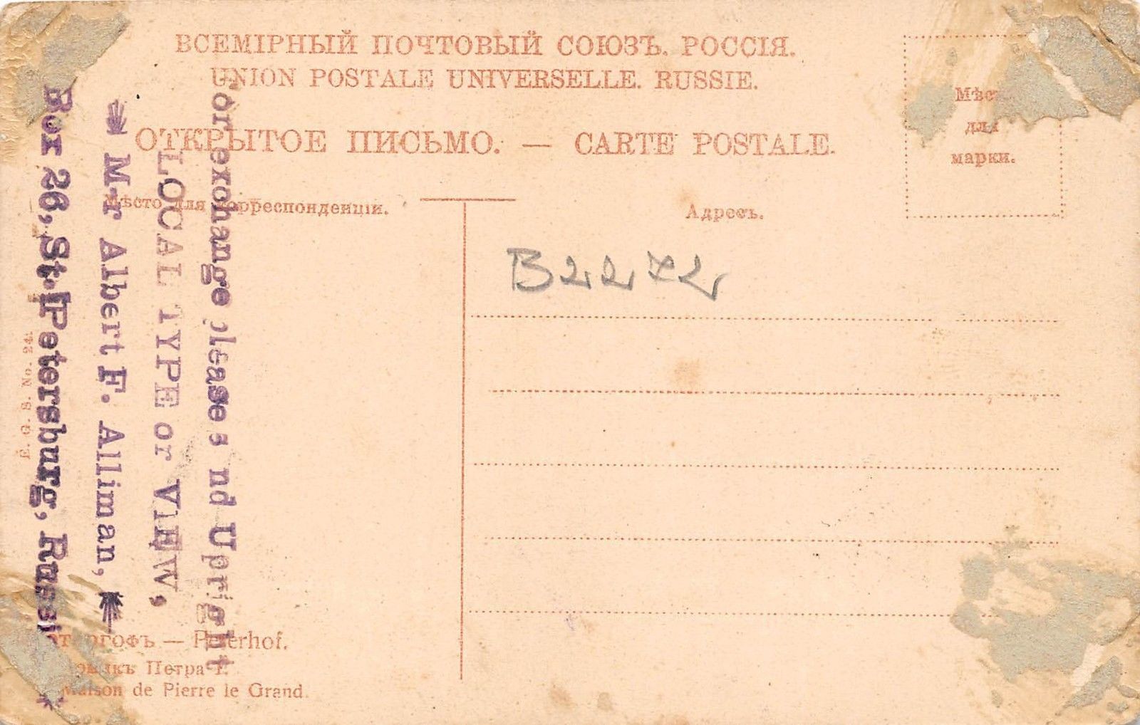 B2272 Russia Peterhof La Maison de Pierre le Grand front/back scan