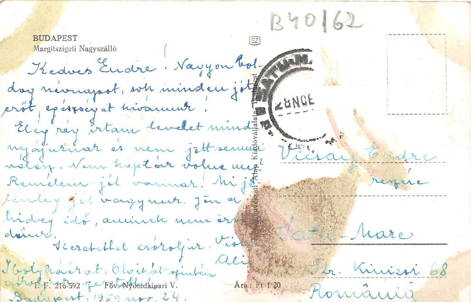 B40162 Budapest Margitszigeti Nagyszallo hungary