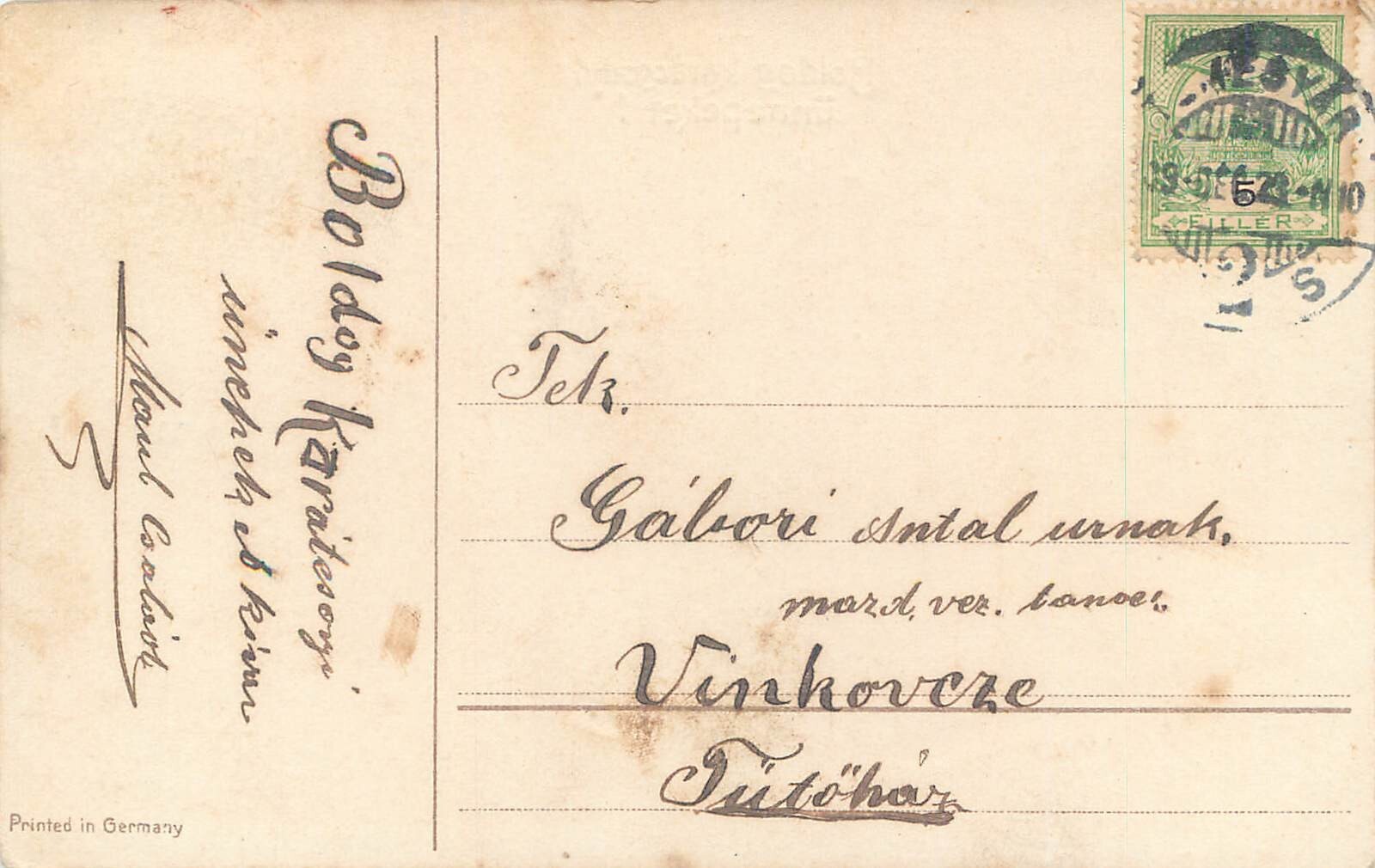 Christmas greetings postcard features a charming illustration of a girl pulling a sledge filled with apples and gingerbread. This original postcard captures the holiday season with a whimsical fantasy theme, making it a great and collectible item posted in 1923. The postcard, measuring a standard size of 5.5 x 3.5 inches, whit gold gilded embossed design and comes from the era of divided back. It was manufactured in Germany and is sure to bring nostalgic Christmas cheer to any collector or enthusiast of vintage postcards.