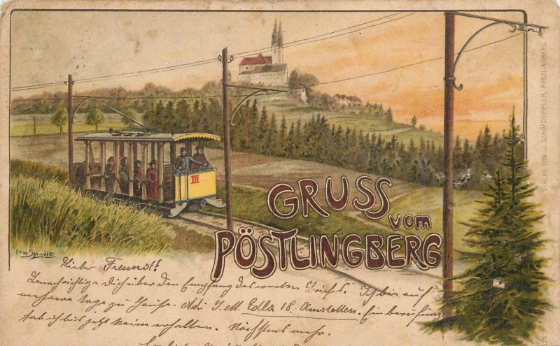 B584 Austria Litho Gruss aus Postlingberg electric train postcard pre-1900