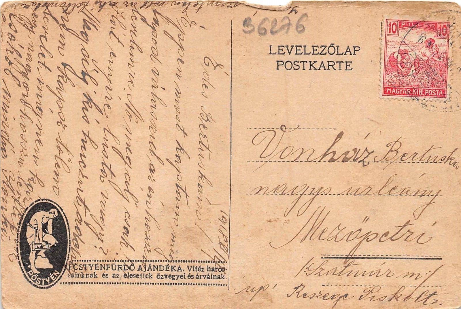 B6276 Slovakia Postyen Thermia Hotel 1918