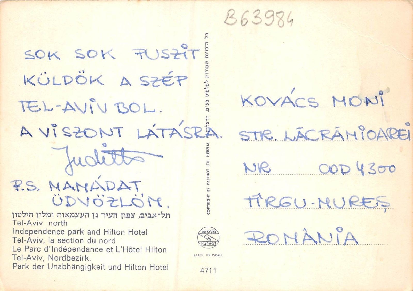 Due to the scan process, small transversal scratches may occur in the image.Please note if you see any that these scratches are only from scanner , they are not on the postcard. YOUR ITEM WILL BE SENT FROM ROMANIA, SO THE NORMAL DELIVERY TIME is 5-10 days -REGISTRED MAIL 5 US DOLLARS -SIMPLE MAIL - 2 USD . We combine multiple items..with very good rates For any questions..please feel free to ask.All items over 8 euro/pounds will be sent only with registred mail FOR EU buyers i also Accept questions>just ask for the bank info