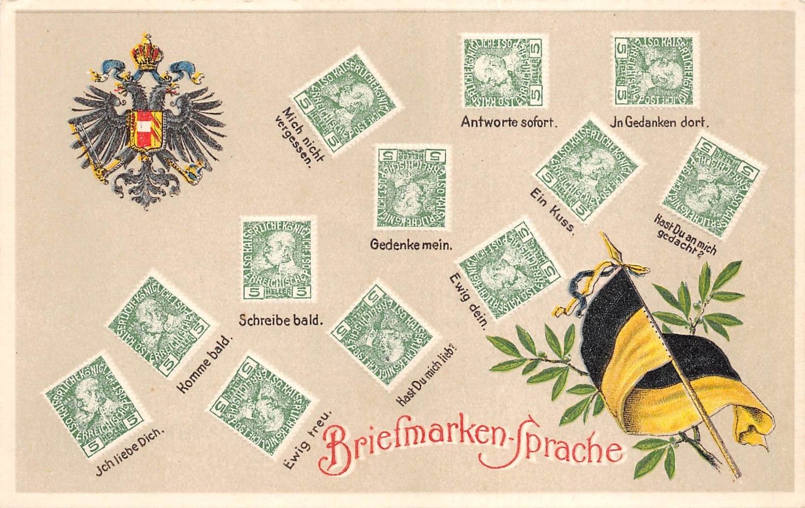 B95041 briefmarken sprache stamp language embossed heraldic germany
