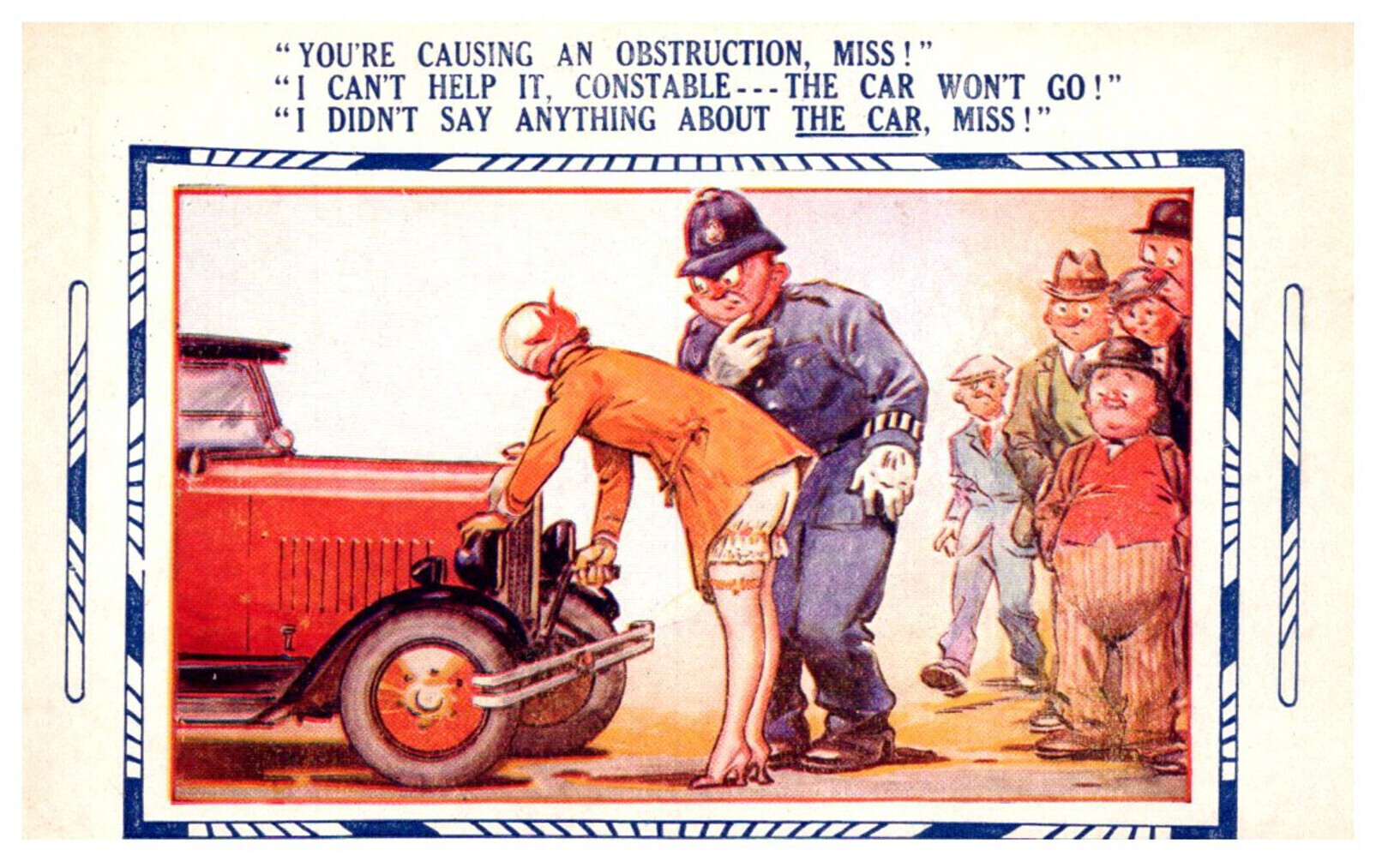 Bamforth, Art Comic Girl Bent over Car, Panties exposed