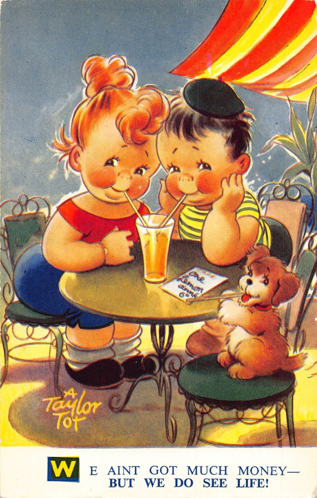 Bamforth Comic Humor Children and Dog French Cafe Drinking postcard This item is listed via xdm.it software