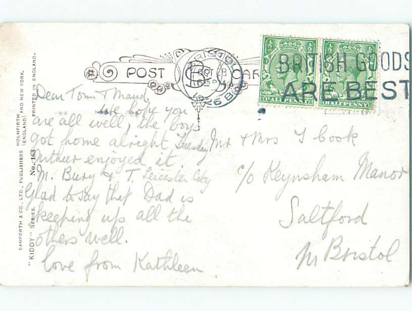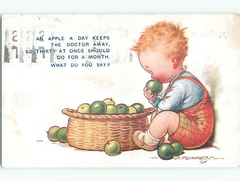 Bamforth comic signed CHILD WITH AN APPLE A DAY OR THIRTY FOR A MONTH k8247