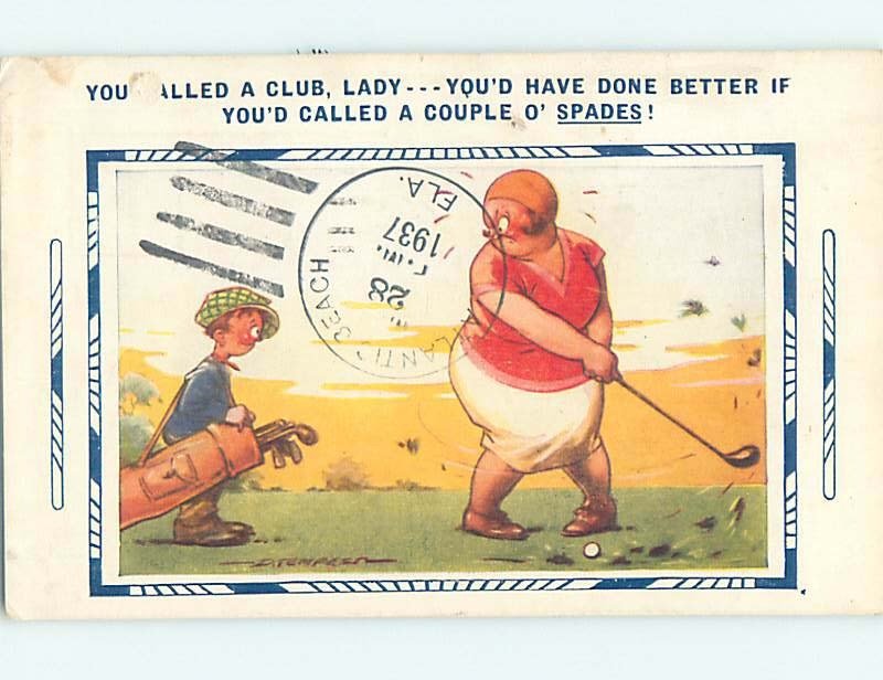 Bamforth comic signed WOMAN GOLFER ANNOYED AT CADDY'S COMMENTS HL3090