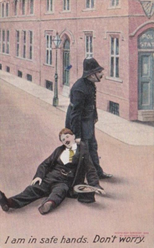 Bamforth Humour Drunk Man Being Pulled By Policeman I Am In Safe Hands Don't ...