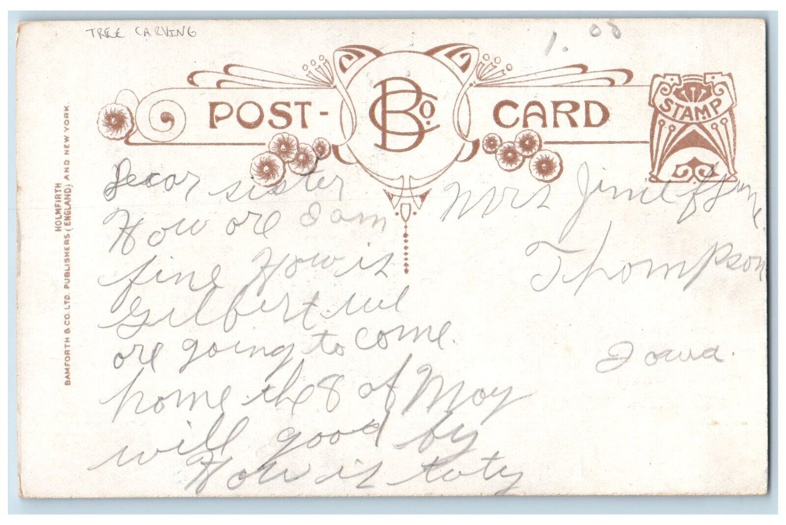 Bamforth Postcard Couple Romance Tree Carving Thompson Iowa IA c1910's Antique