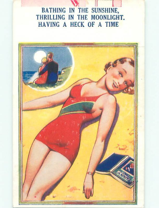 Bamforth Risque Comic SEXY GIRL SUN TANNING ON BEACH AB6897