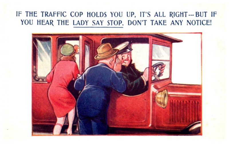 Bamforth,Auto Comic , Man talkin tp Chauffer