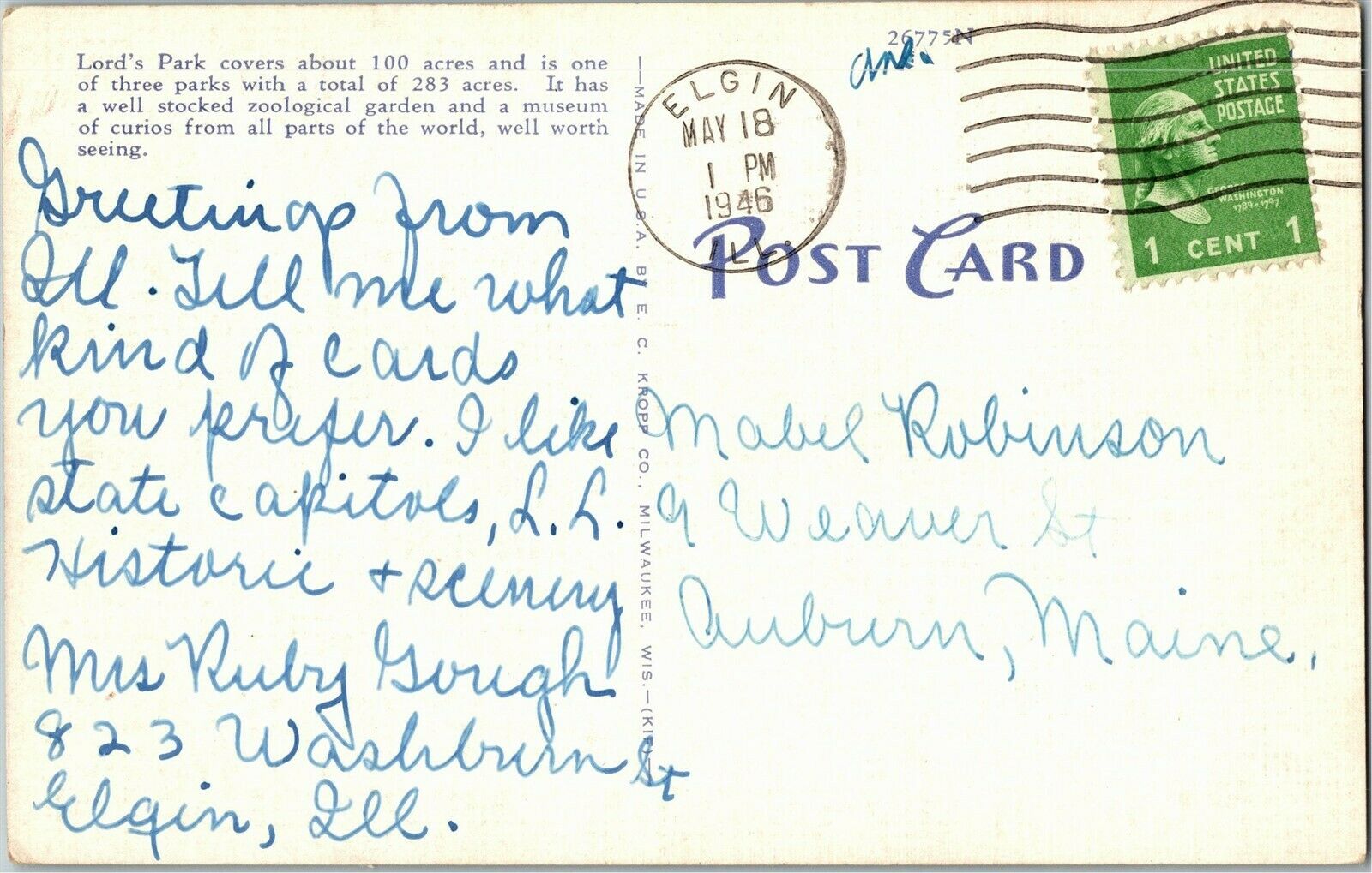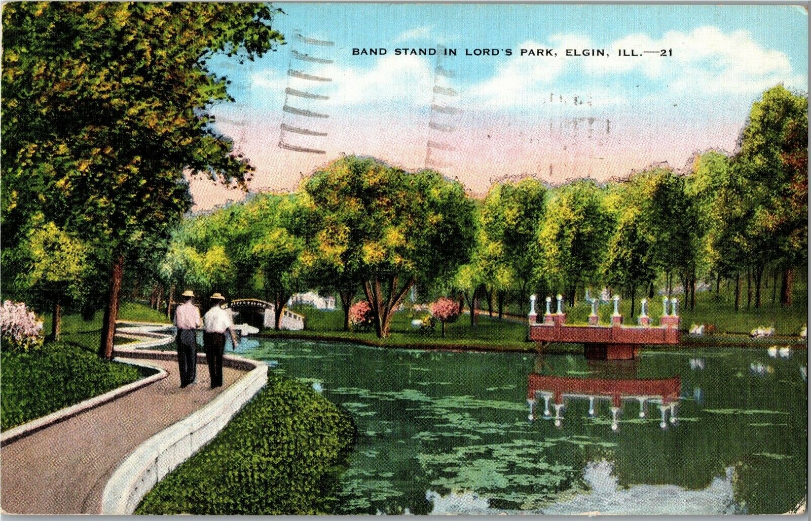 Band Stand in Lord's Park Elgin IL c1946 Vintage Postcard B03