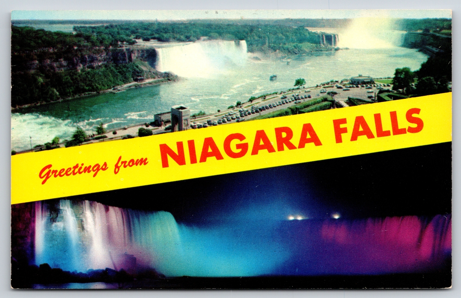 Banner Greeting~Niagara Falls New York~Day & Night Scenes~1957 Postcard