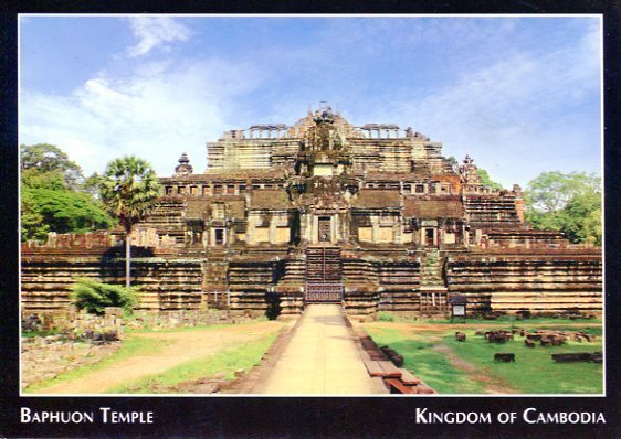 Massive 11th-century temple-mountain within Angkor Thom, one of Angkor's grandest restorations. Modern Picture Postcard Continental Size or Slightly Larger.Seller Information
