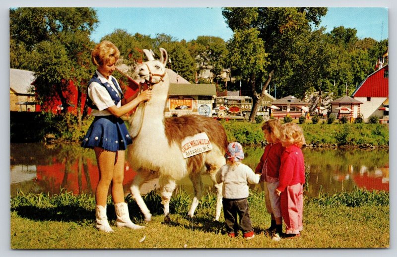 Baraboo Wisconsin~Circus World Museum~Pond~Lady~Llama~Children~1950s Postcard