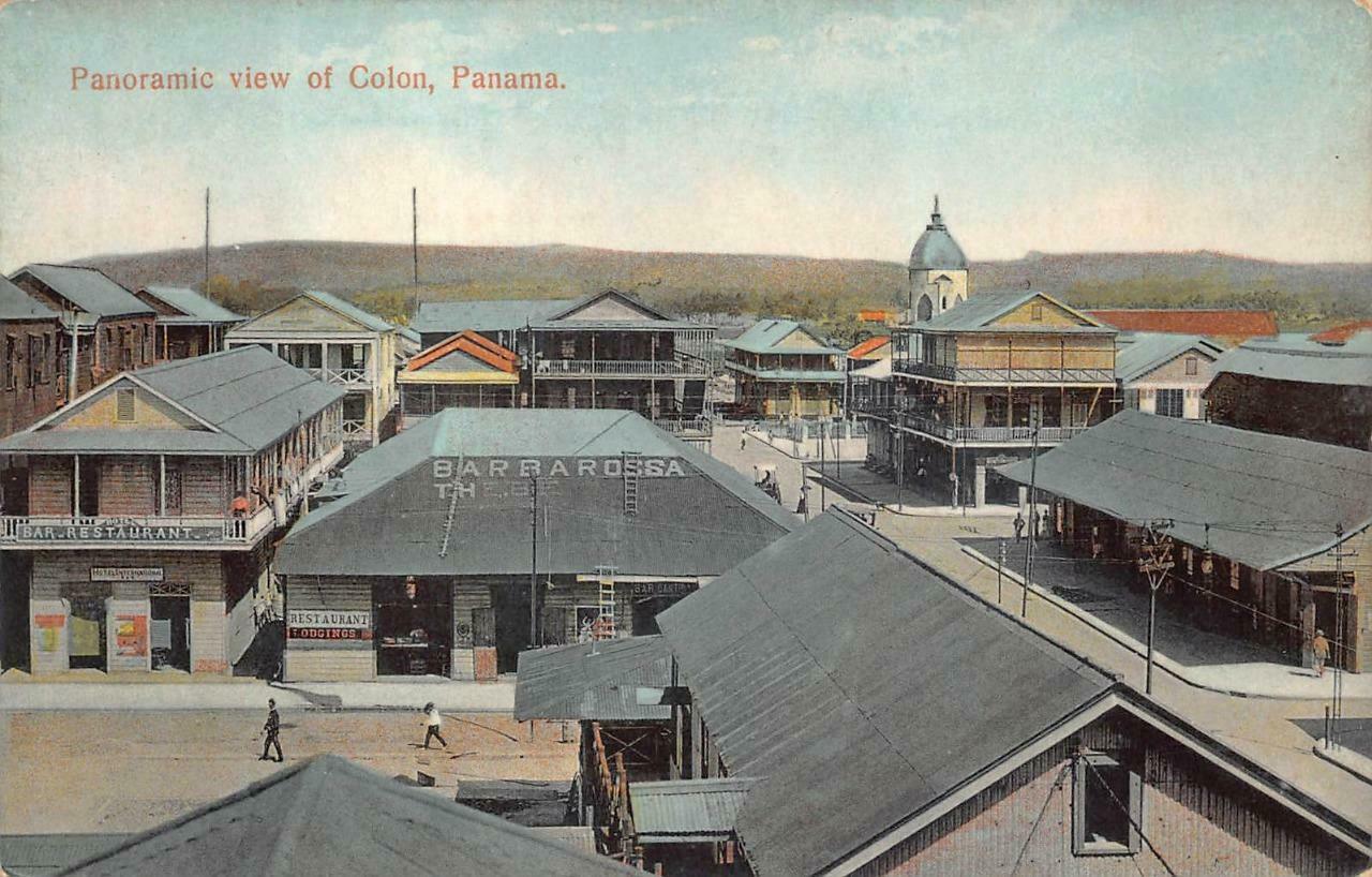BARBAROSSA RESTAURANT PANORAMIC VIEW OF COLON PANAMA POSTCARD (c.1910)