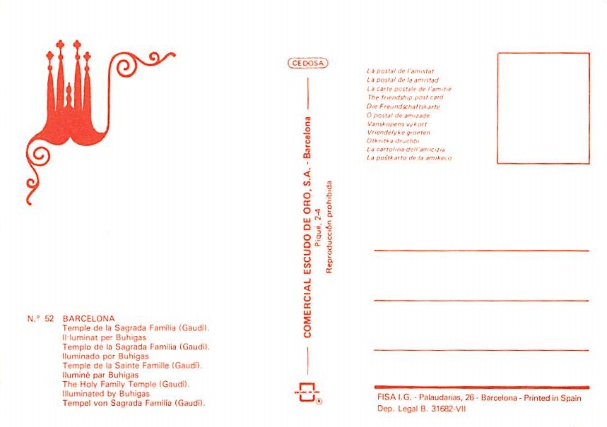 Barcelona - Grade: 1 Category: Continental Size Postcard, Approx 4 in x 6 in (10 cm x 15.25 cm) Product Size: Continental size: 4X6 inches (10.5 cm x 15 cm) Grading Scale: Grade 1 = Perfect corners Grade 2 = Ve ... Read More