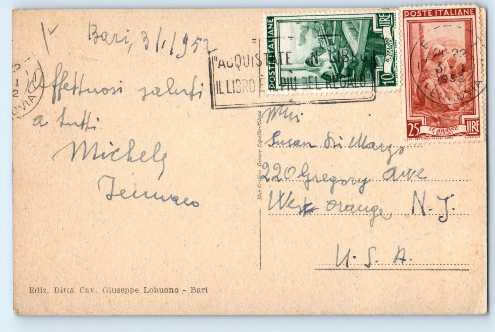 Bari Apulia Italy Postcard Corso Cavour and Lungomare Commodity Exchange 1952