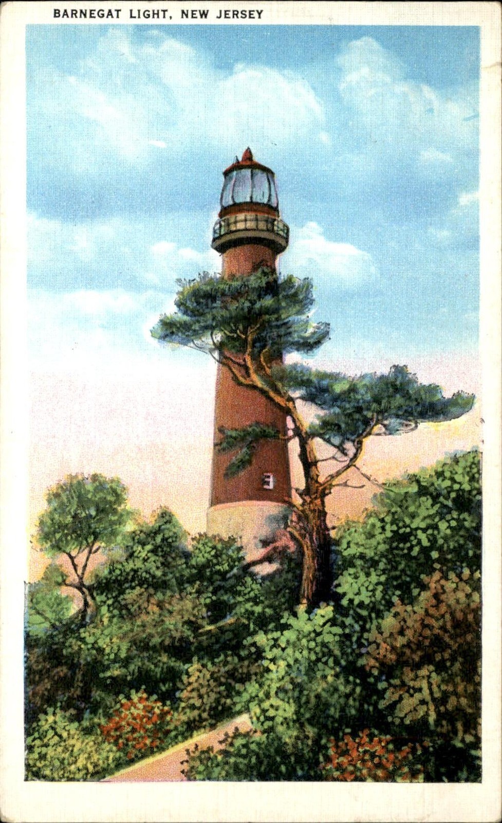 Barnegat NJ New Jersey Lighthouse c1930-50s Vintage Postcard