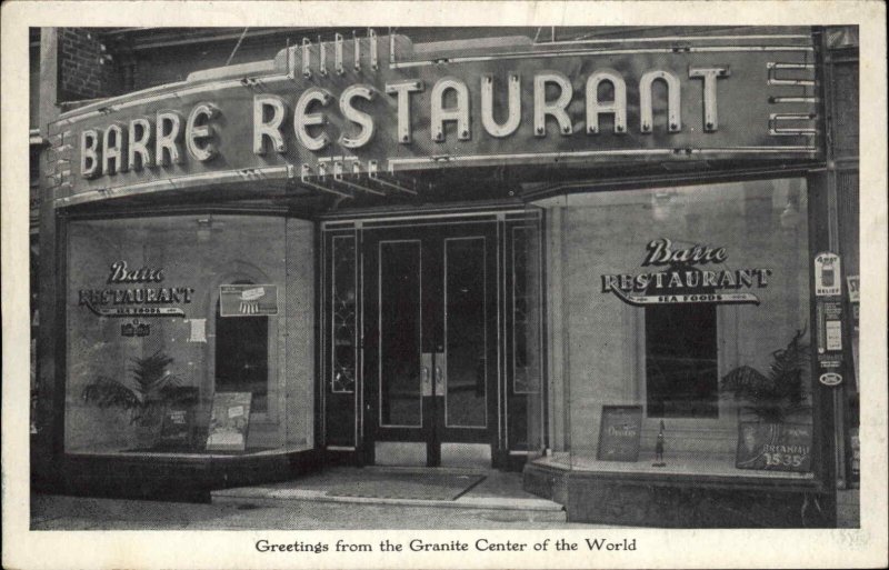 Barre Vermont VT Restaurant c1940s Postcard