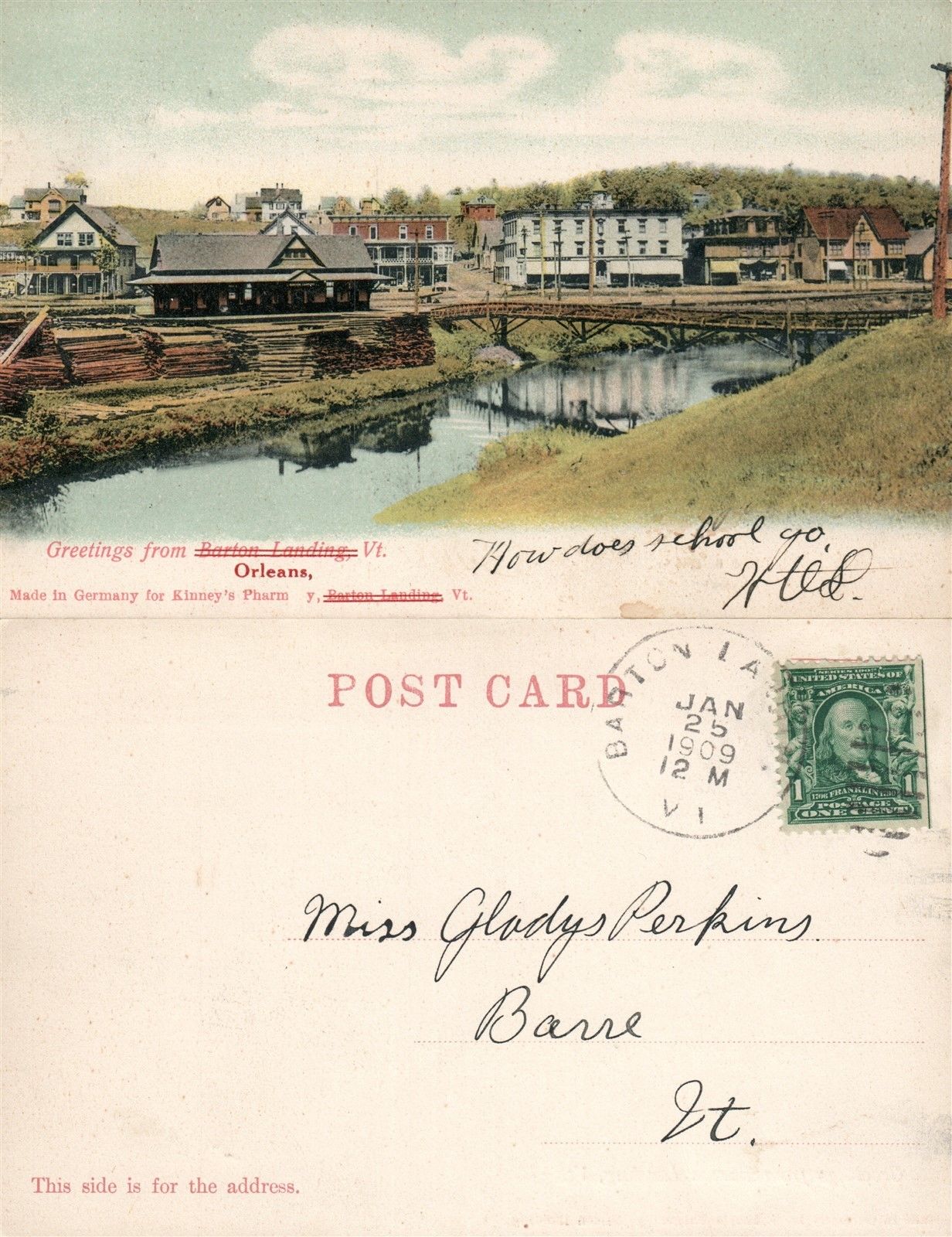 BARTON LANDING - ORLEANS VT ANTIQUE UNDIVIDED POSTCARD