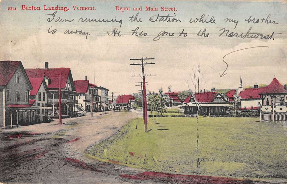 Barton Landing Vermont Depot and Main Street Vintage Postcard AA16388 Good Condition. Please disregard the letter and number in the title. It is for our inventory only. This listing created with GLETech Multiple Selling Channel tools.