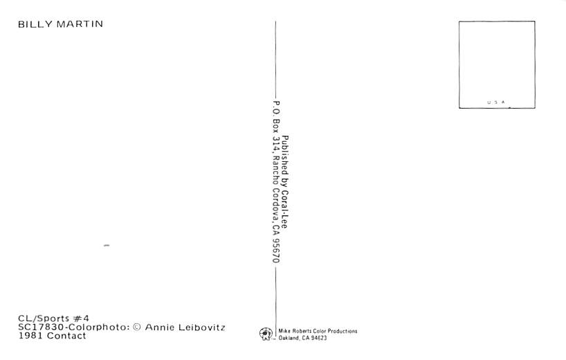 Billy Martin Year Date of Postcard, or Postal Used / Year Used: unused Grade: 1 Category: Baseball Postcard Base Ball Post Card Product Size: R Notes: Grading Scale: Grade 1 = Perfect corners Grade 2 = Very ... Read More