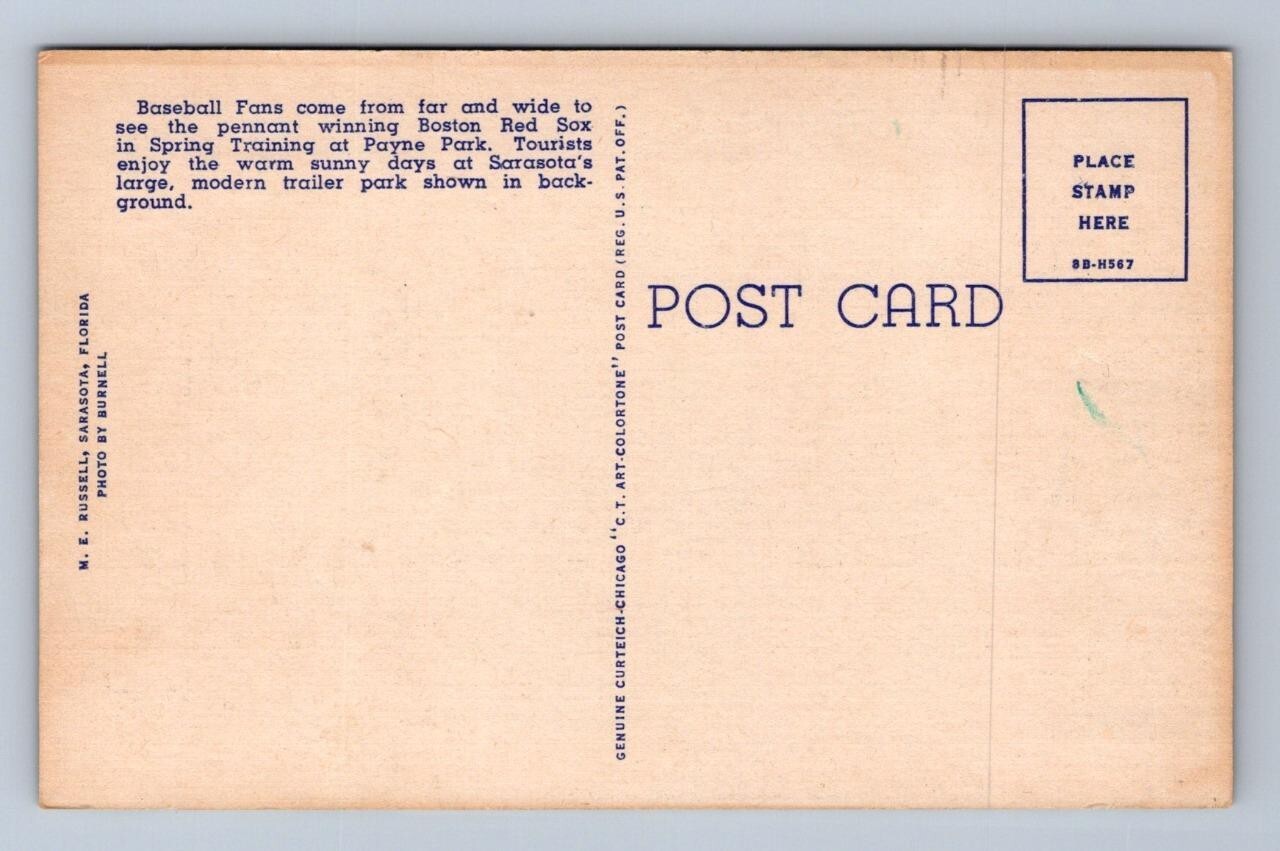 BASEBALL SPRING TRAINING BOSTON RED SOX SARASOTA FLORIDA POSTCARD (c.1940s) !!