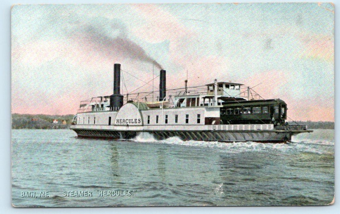 BATH, ME Maine ~ STEAMER "HERCULES" Railroad Car Ferry c1910s Postcard