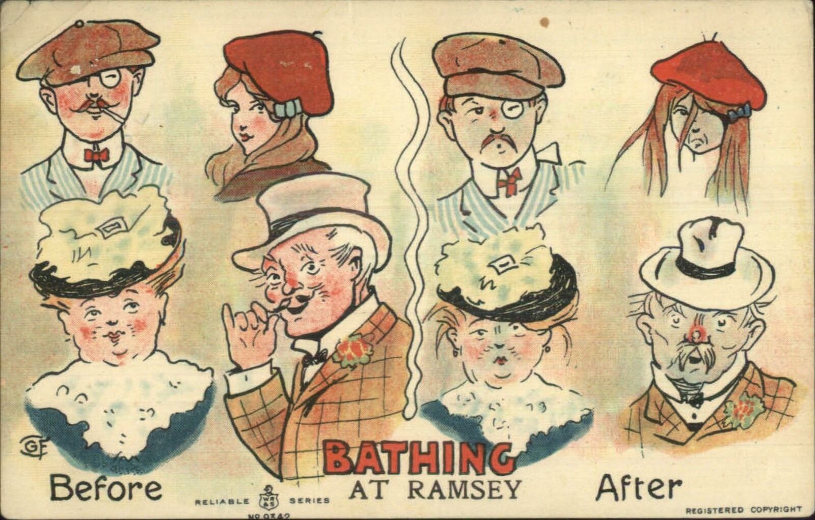 Bathing at Ramsey UK Comic Faces c1910 Postcard