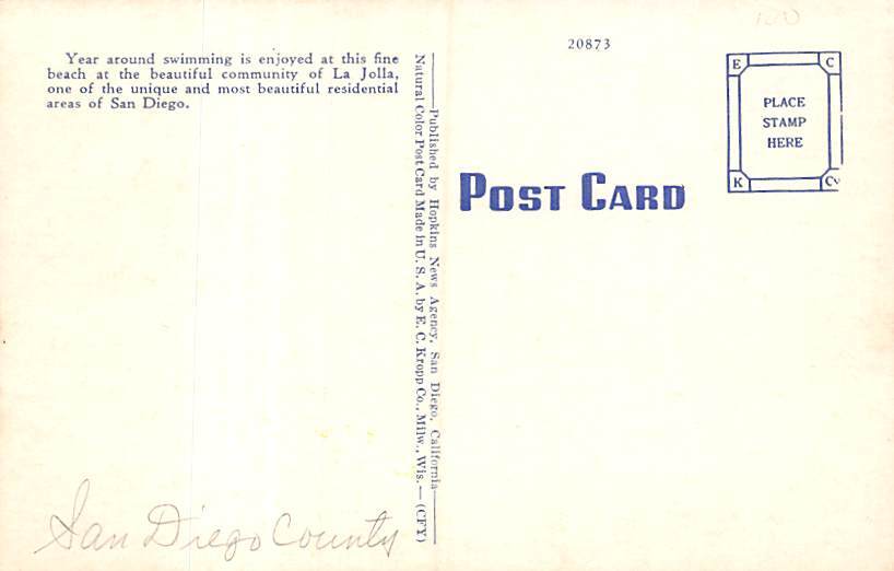 Bathing Beach La Jolla CA Postcard - Unused Grade: 1 Size: R - Regular size: Approx 3 1/2 X 5 1/2 inch (9 cm X 14 cm) Grading Scale: Grade 1 = Perfect corners Grade 2 = Very Minimal corner wear, no creases Gra ... Read More