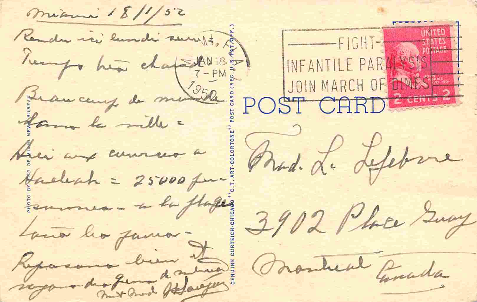 Postal Use: used, posted 1952