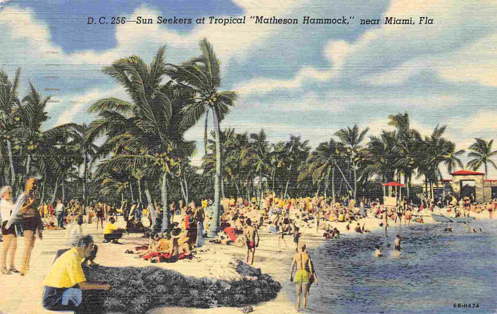 Description: Bathing Beach Matheson Hammock Miami Florida 1952 linen postcardType: linen