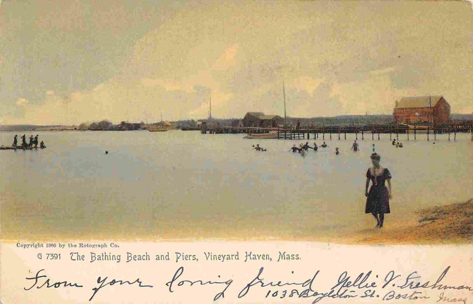 Bathing Beach Piers Vineyard Haven Massachusetts 1910 Rotograph postcard