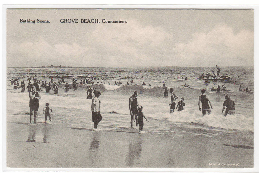 Bathing Beach Scene Grove Beach Connecticut postcard