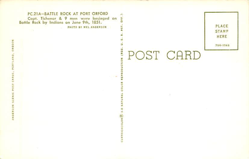 Battle Rock Oregon Coast, Oregon OR Postcard - Unused Grade: 1 Size: R - Regular Size Postcard - approximately 3 1/2 inch x 5 1/2 inch (9 CM x 14 CM) Grading Scale: Grade 1 = Perfect corners Grade 2 = Very Mini ... Read More