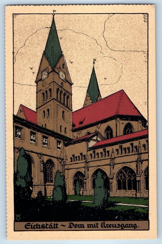 Bavaria Germany Postcard Eichstätt Cathedral with Cloister c1940's Vintage