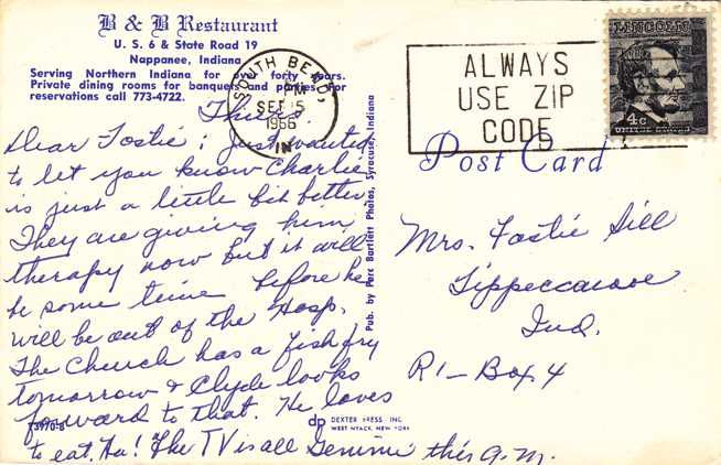 B&B Restaurant - Nappanee IN, Indiana - pm 1966