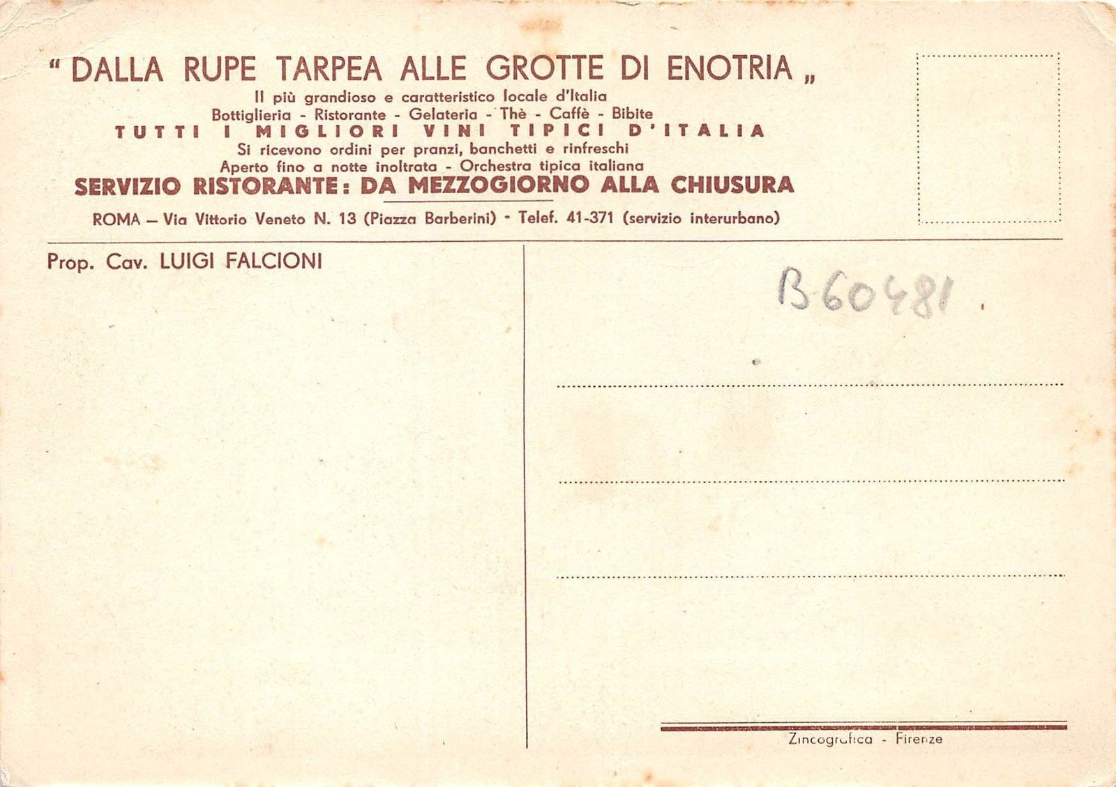 BC60481 Roma Via Vittorio Veneto Restaurante Luigi Falcioni