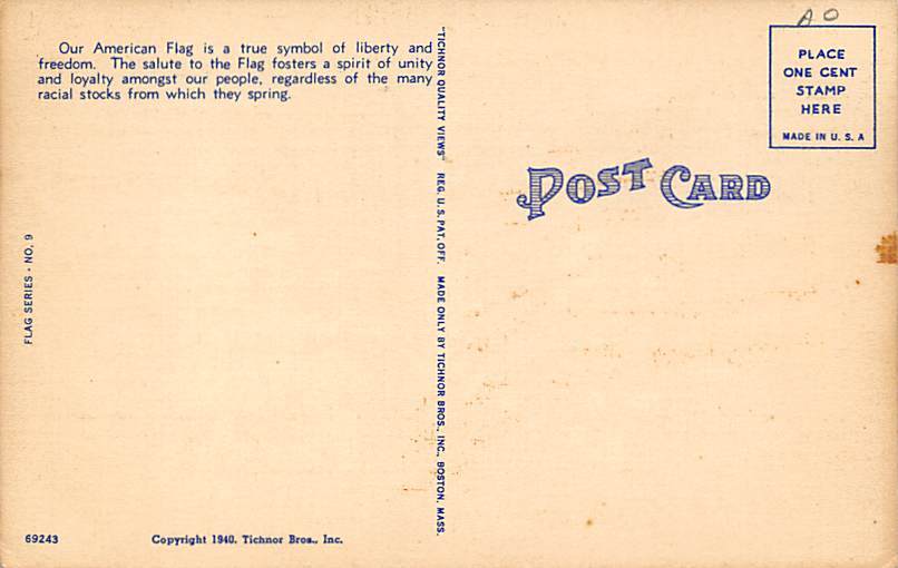 Be Loyal To Your Flag Postcard Unused, Grade: 1, , Size: Regular Size Postcard - approximately 3 1/2 inch x 5 1/2 inch (9 CM x 14 CM) Grading Scale: Grade 1 = Perfect corners Grade 2 = Very Minimal corner wear, ... Read More