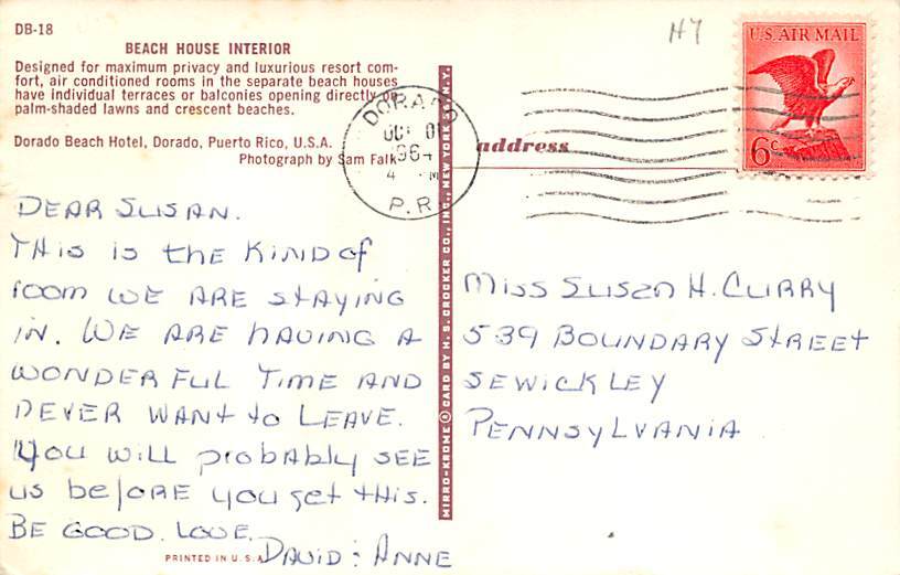 Beach House Interior Dorado Puerto Rico Postal used unknown