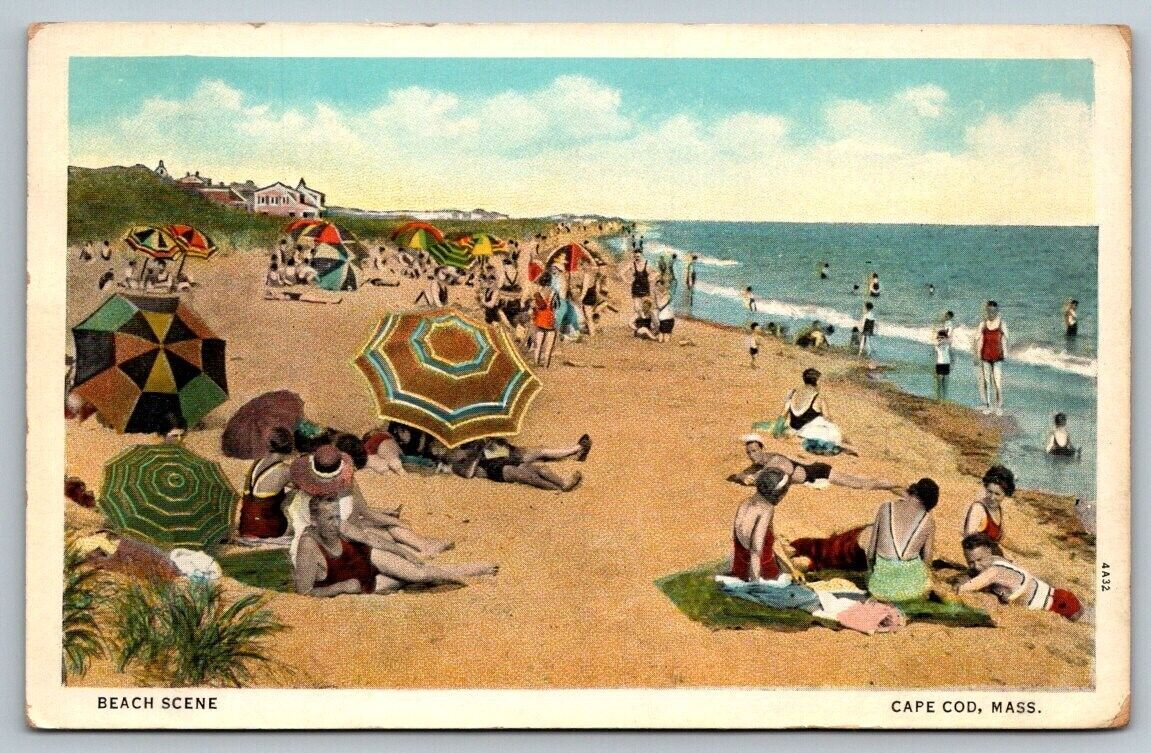 Beach Scene Cape Cod Massachusetts Postcard 1934