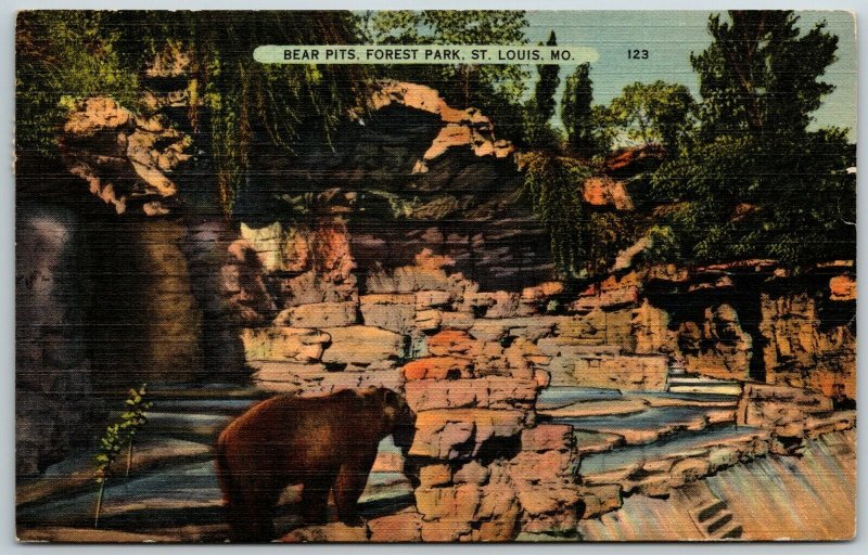 Bear Pits, Forest Park, St. Louis, Missouri - Postcard