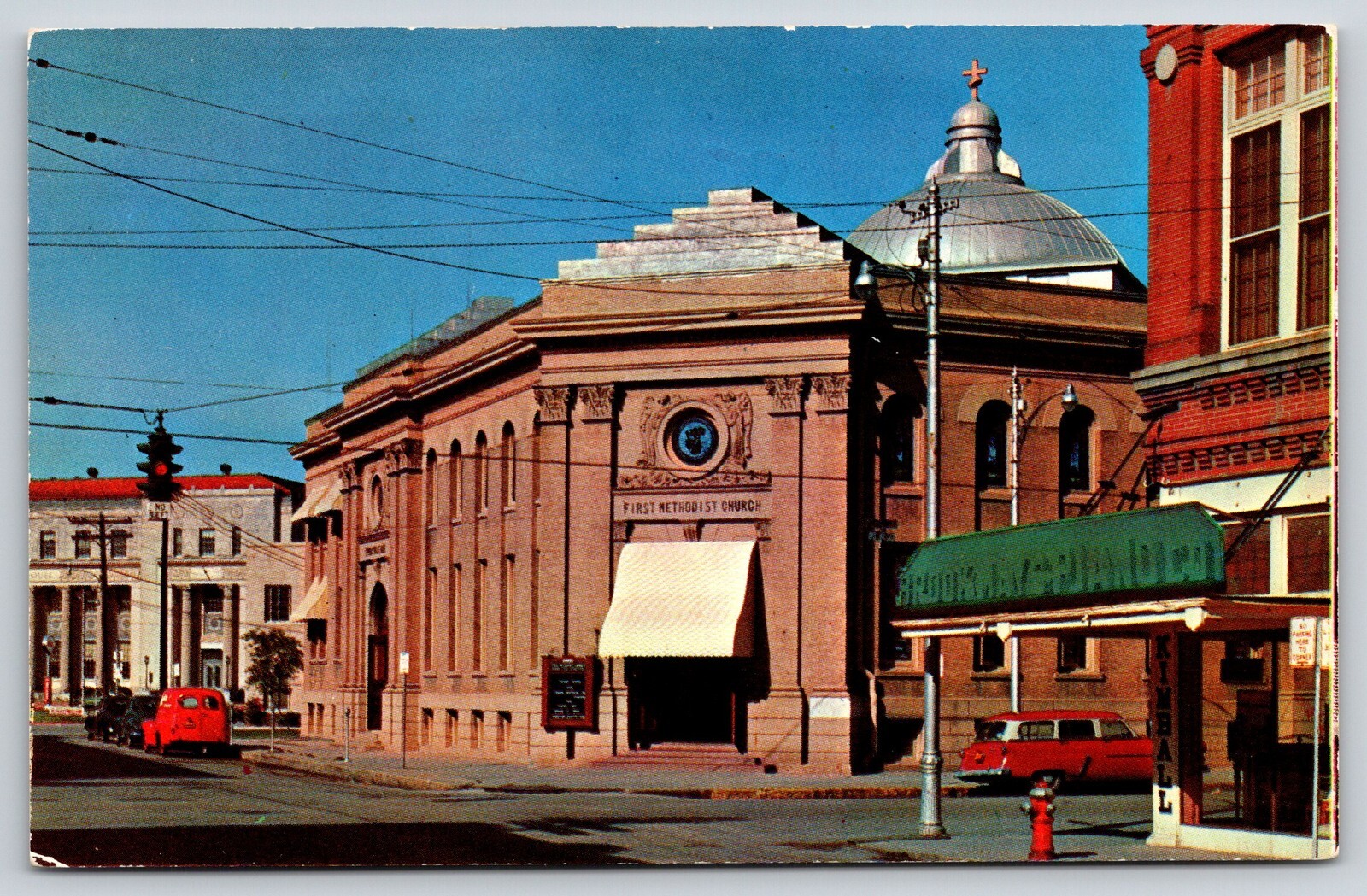 Beaumont Texas~1st Methodist Church St View~Dome~Cross~Awning~1950s Postcard