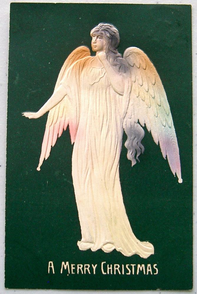 Beautiful Dramatic Merry Christmas Angel EMB Postcard