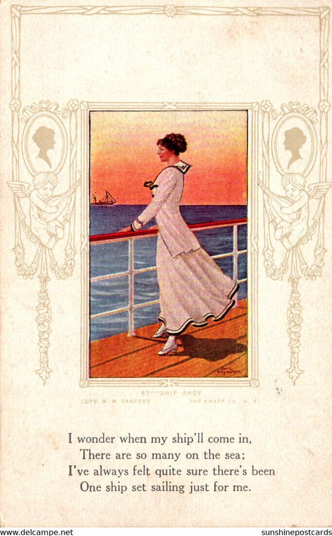 Beautiful Lady Waiting On Ship 1912
