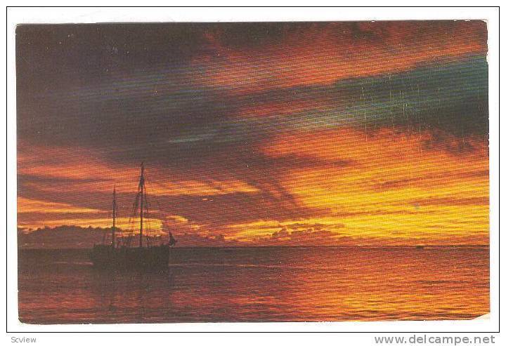Beautiful sunset, Barbados, 40-60s :: Postcard,standard size, 3.5 by 5.5, Chrome, VG,CW