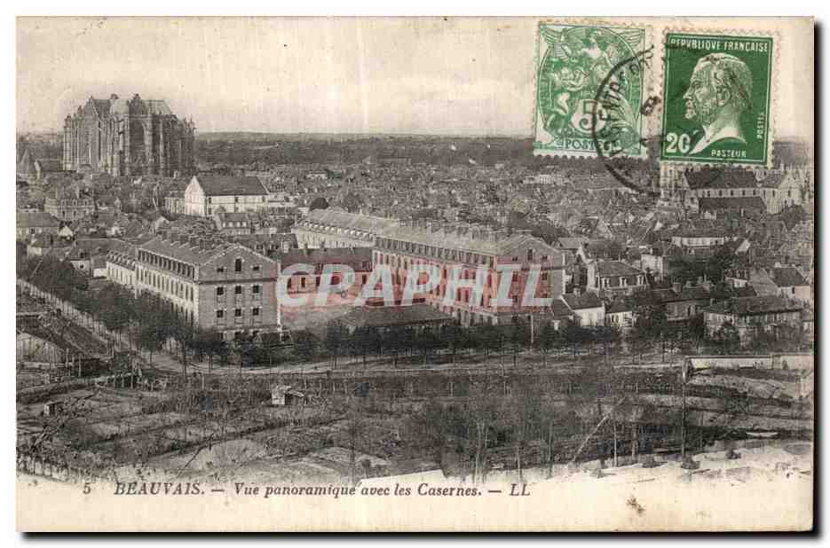 Beauvais - Panoramic with Barracks - Old Postcard Militaria