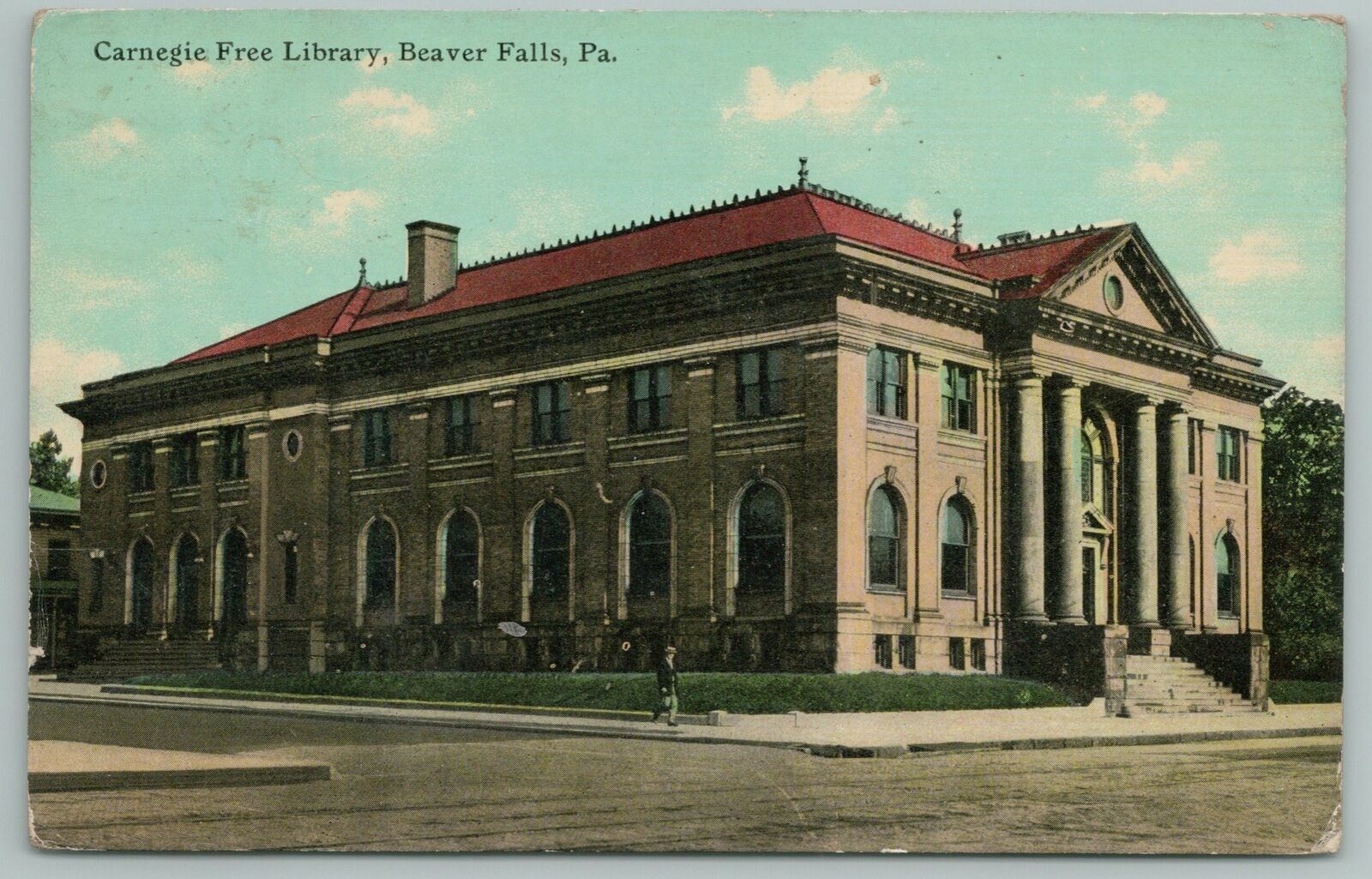 Beaver Falls Pennsylvania~Carnegie Free Library~Vintage Postcard