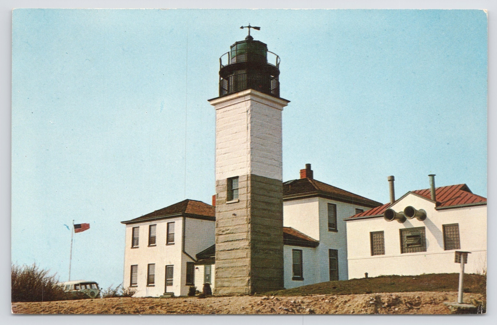 Beaver Tail Lighthouse~Rhode Island~Classic VW Van~US Flag~Chrome Postcard